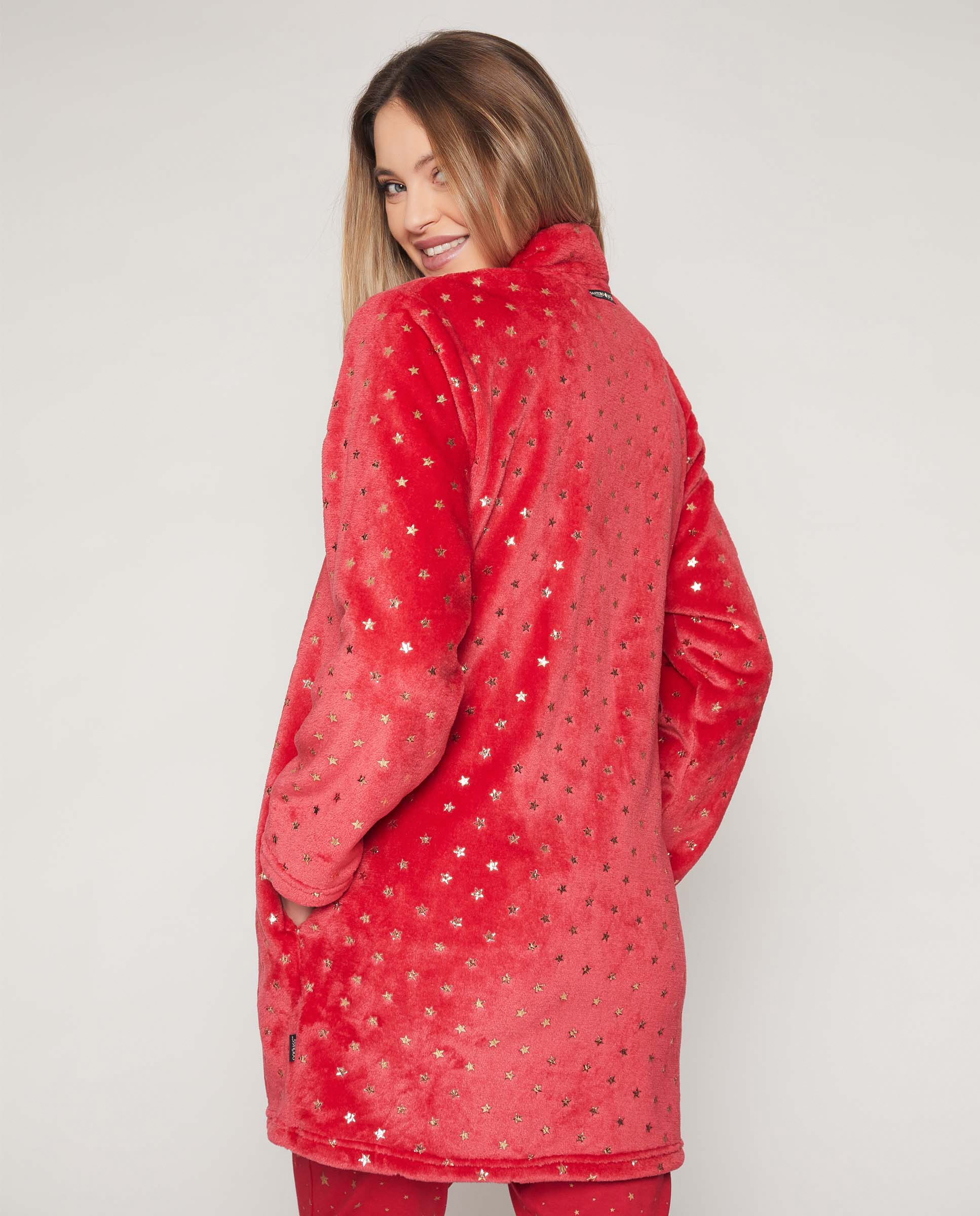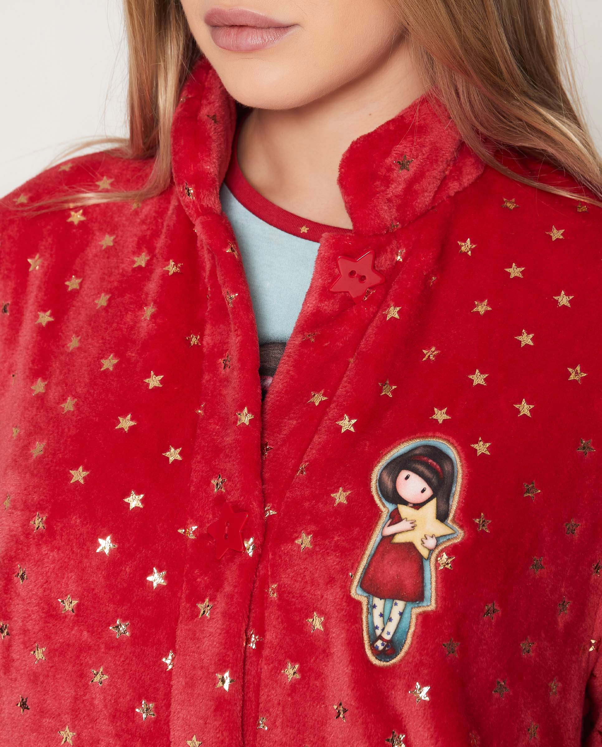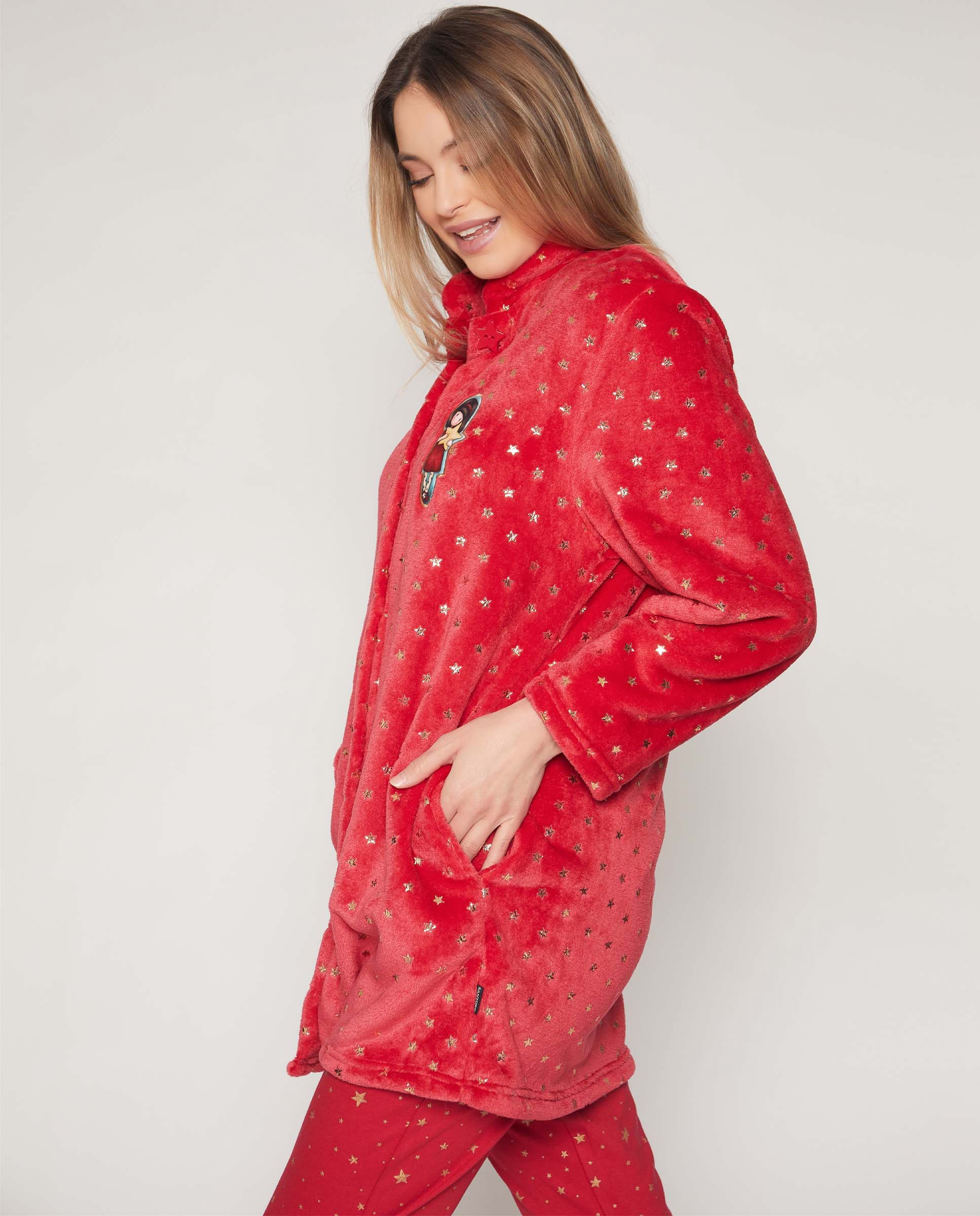 Bata divertida y original para Señora en tono Frambuesa con aplique Bordado de Gorjuss.