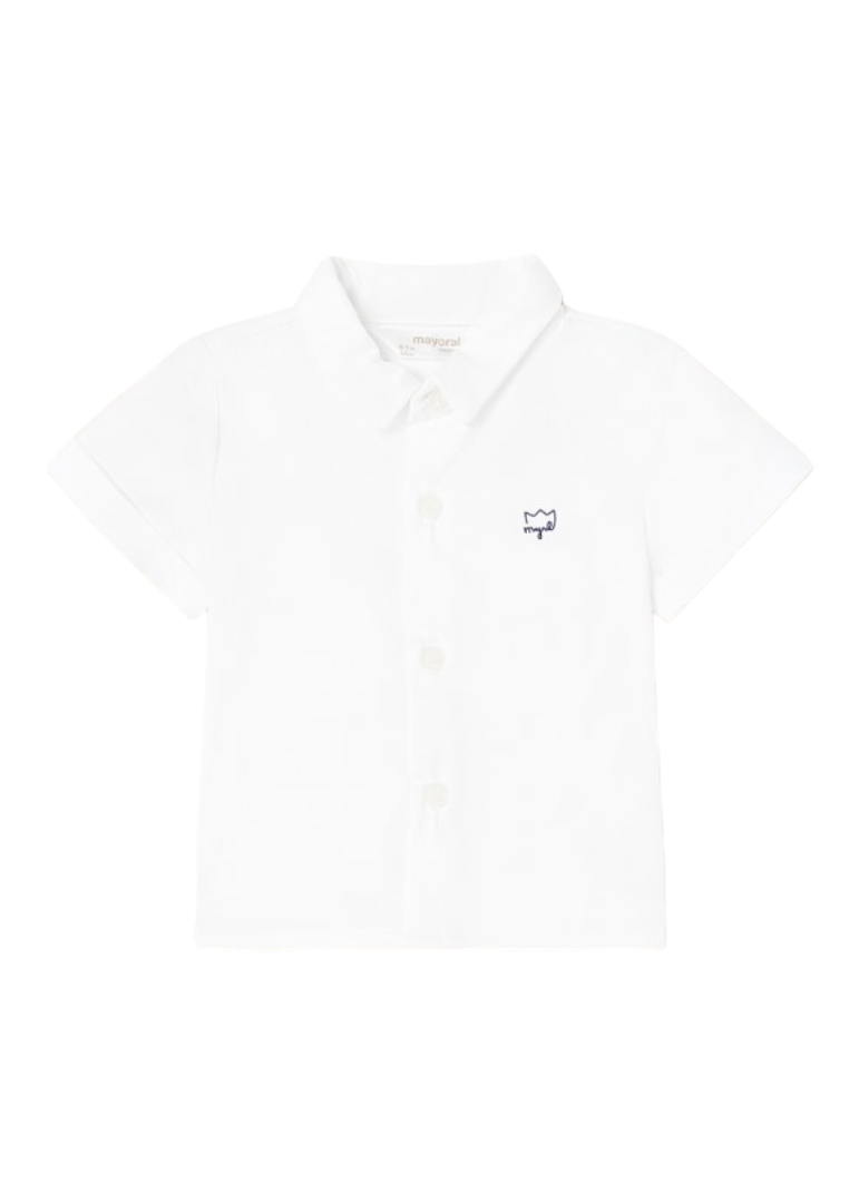 Camisa de manga corta para recién nacido. Cuello camisero. Tejido 100% algodón.