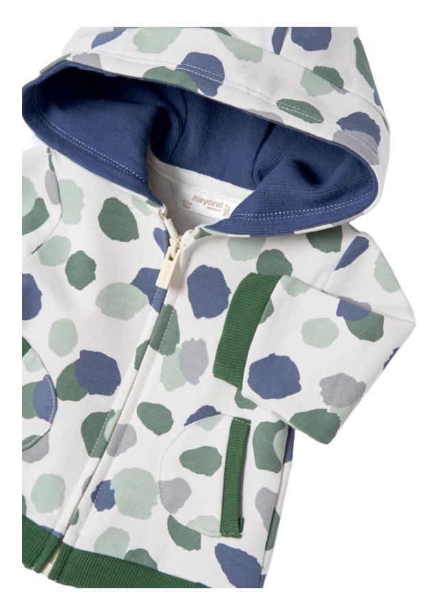 Canguro de manga larga para recién nacido. Modelo con capucha. Cierre central delantero con cremallera.