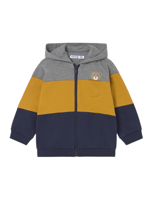 Sudadera de manga larga para bebé. Modelo con capucha. Cierre central delantero con cremallera. Bajo y puños de punto elástico para un mejor ajuste. Bolsillos funcionales en la parte delantera. Elementos de adorno: detalles de color a contraste.