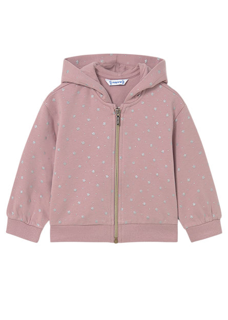Canguro de manga larga para bebé. Cuello con capucha. Cierre central delantero con cremallera.