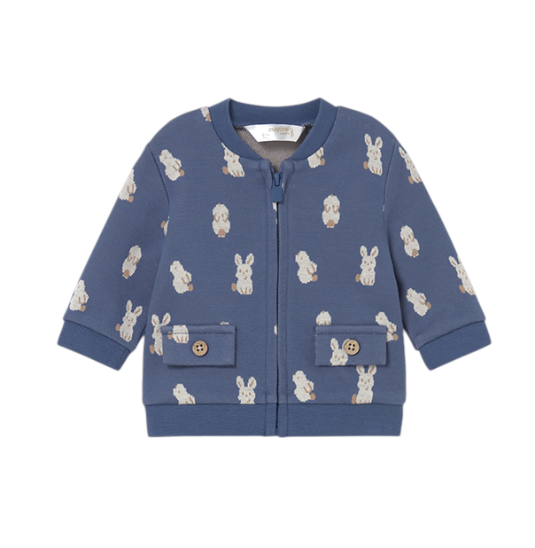 Sudadera de manga larga para recién nacido. Cuello bomber. Cierre central delantero con cremallera. Elementos de adorno: bolsillo decorativo.