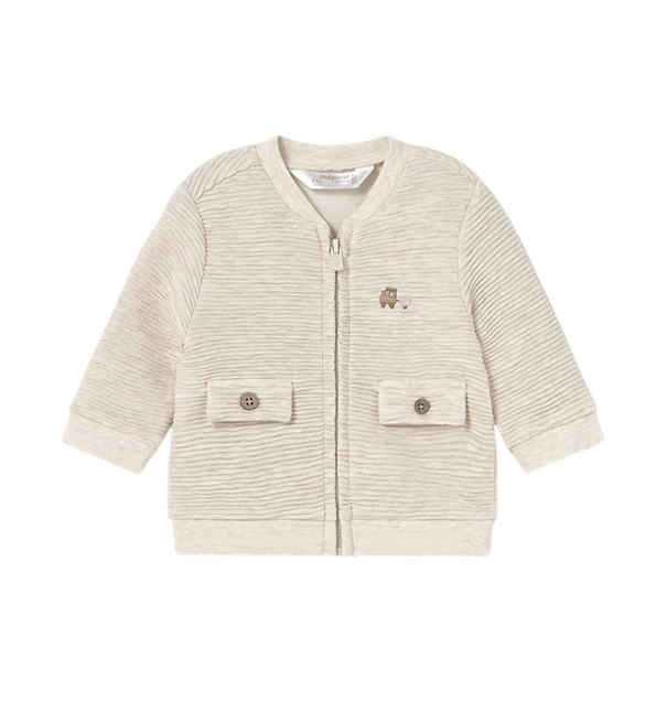 Sudadera de manga larga para recién nacido. Cuello bomber. Cierre central delantero con cremallera. Elementos de adorno: bolsillo decorativo.
