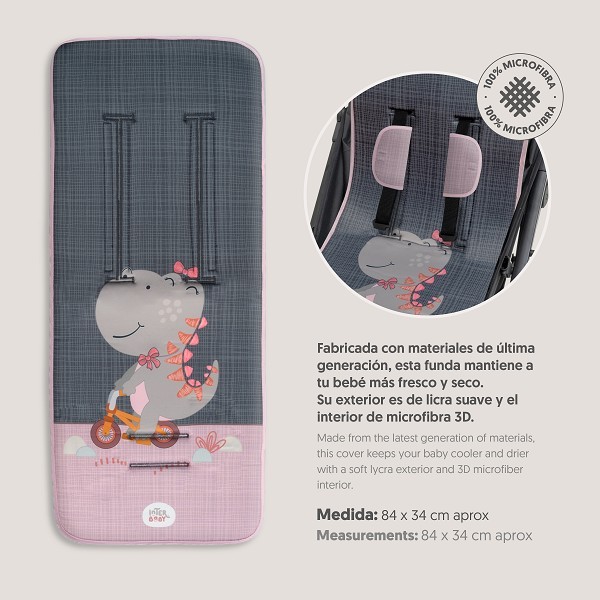🦕 Colchoneta Universal de Verano INTERBABY Dino Gris – Frescura y estilo para los paseos de tu bebé