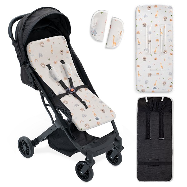 Gracias a su acolchado suave y al tejido fresco, esta colchoneta de verano ayuda a prevenir irritaciones en la piel y aporta una mayor comodidad en cada paseo. Su estampado con animalitos de la selva en tonos beige aporta un toque moderno y tierno al carrito de tu peque.