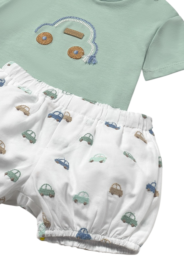 Conjunto Pantalón Corto Bombacho y Camiseta Bebé Mayoral – Color Jade 🍃👶
