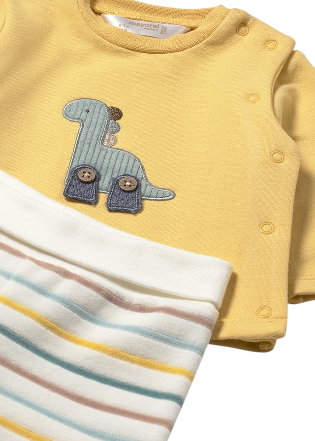 Conjunto de dos piezas para recién nacido compuesto por una sudadera y polaina a juego.