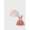 Prenda ECOFRIENDS 100% algodón orgánico. Conjunto de tres piezas para recién nacida niña 0 a 18 Meses compuesto por una rebeca, una camiseta y una falda combinadas.