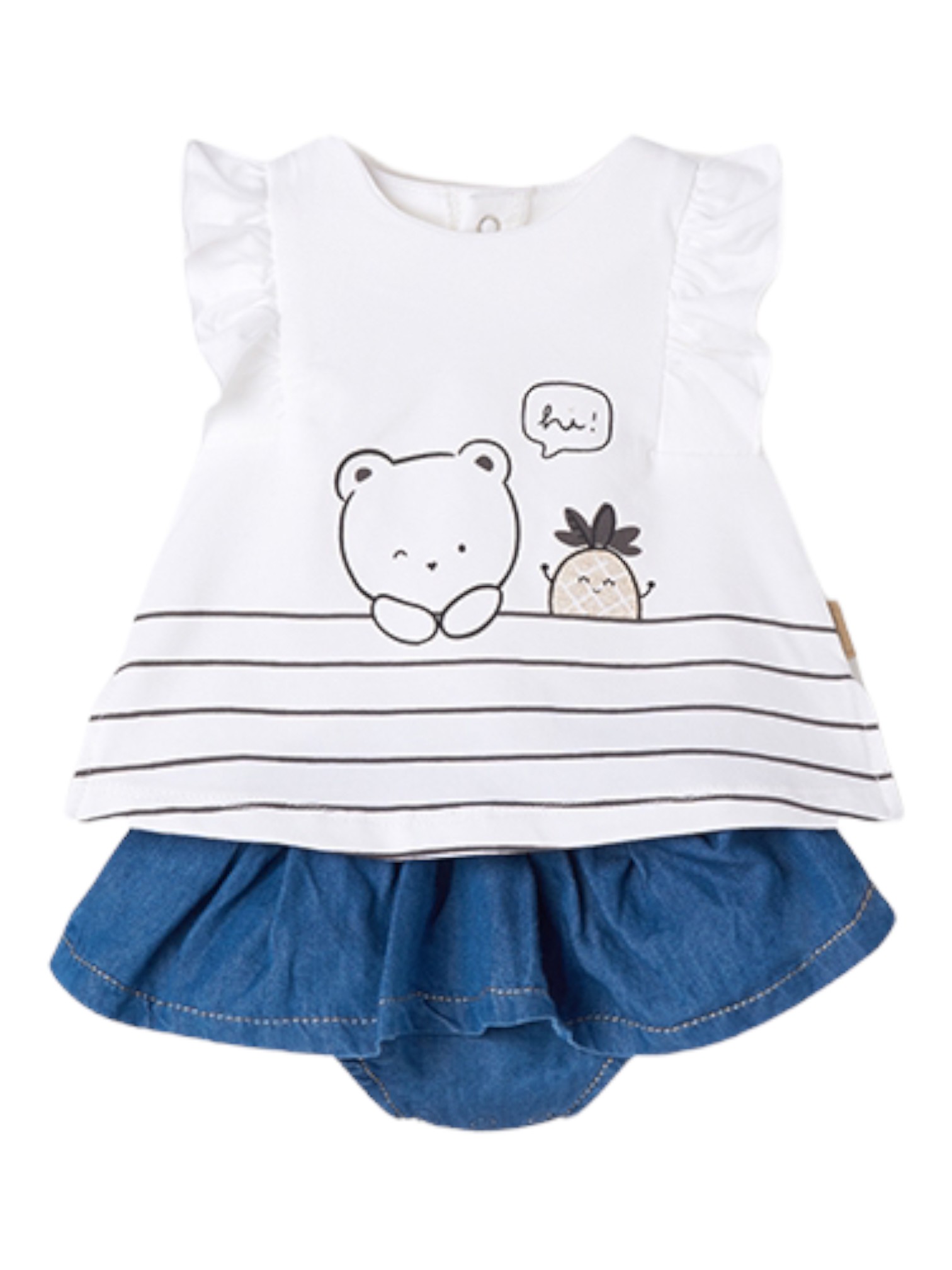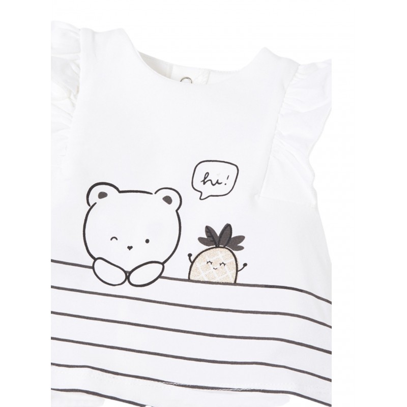 Composición: Camiseta: 95% Algodón 5% Elastano : Falda; 65% Algodón 35% Liocel
