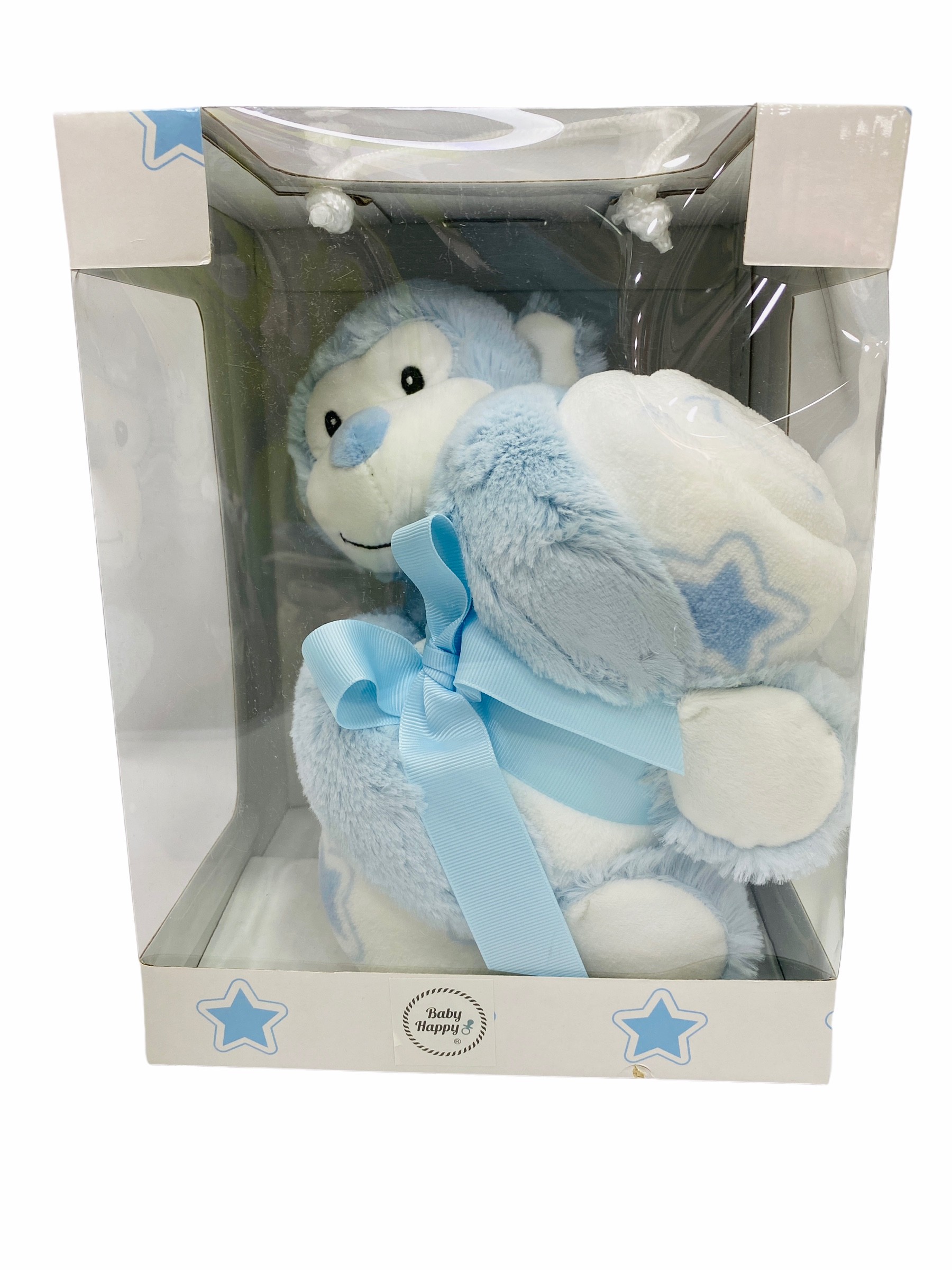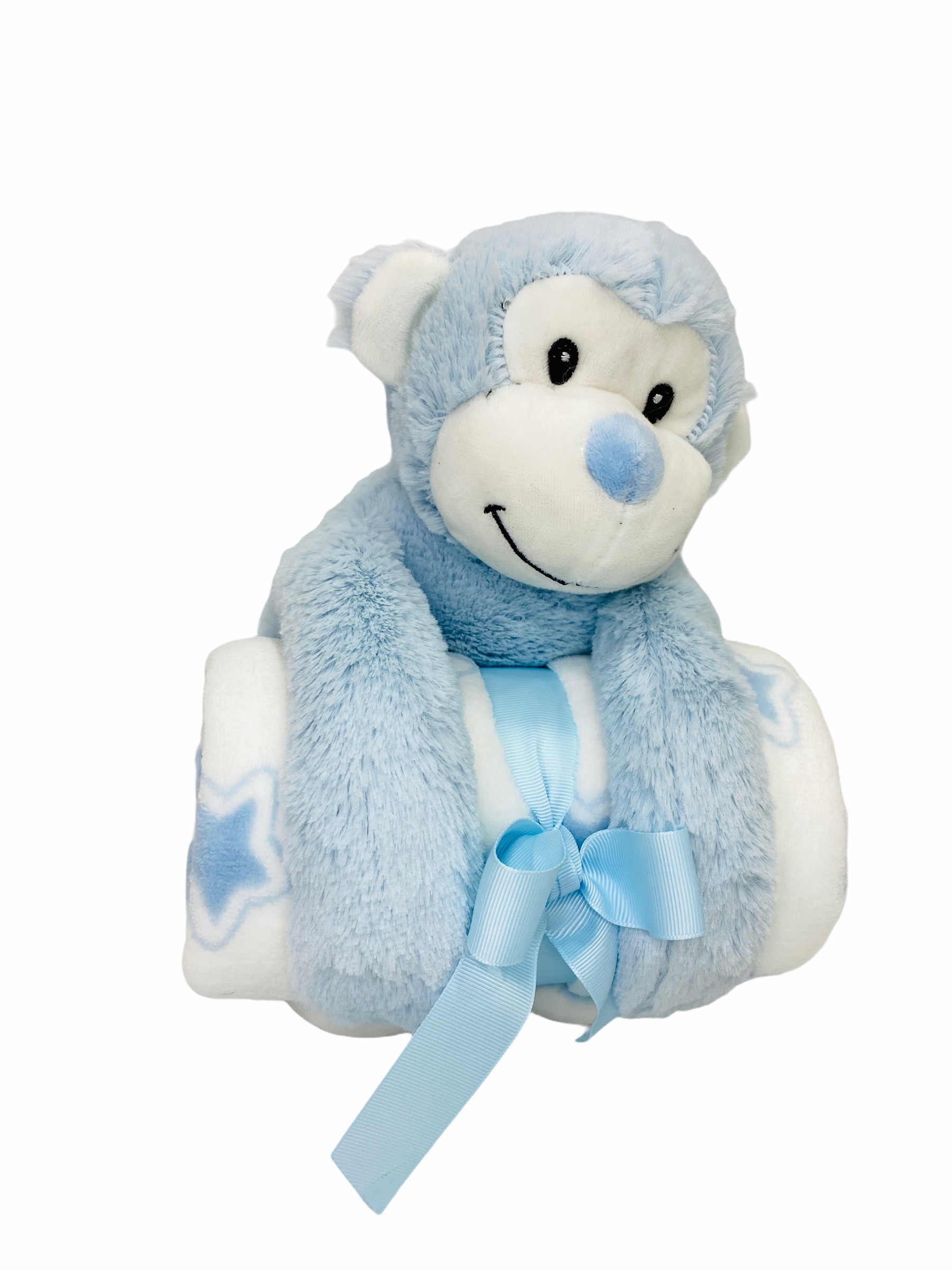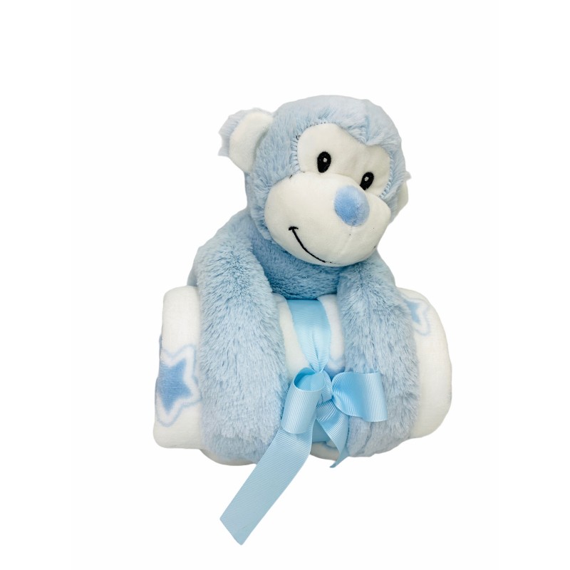 Peluche Mono + Manta Coralina en caja Regalo color AZUL