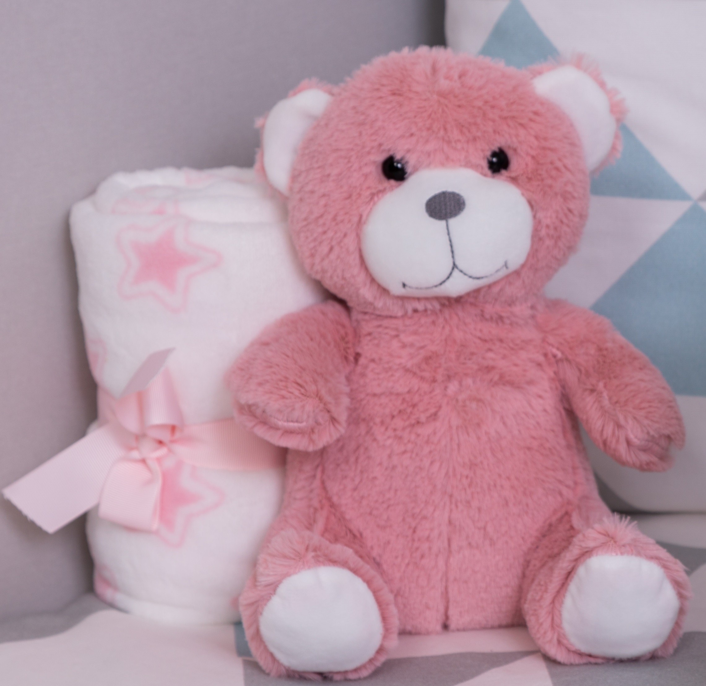 Peluche Osito + Manta Coralina en caja Regalo color ROSA
