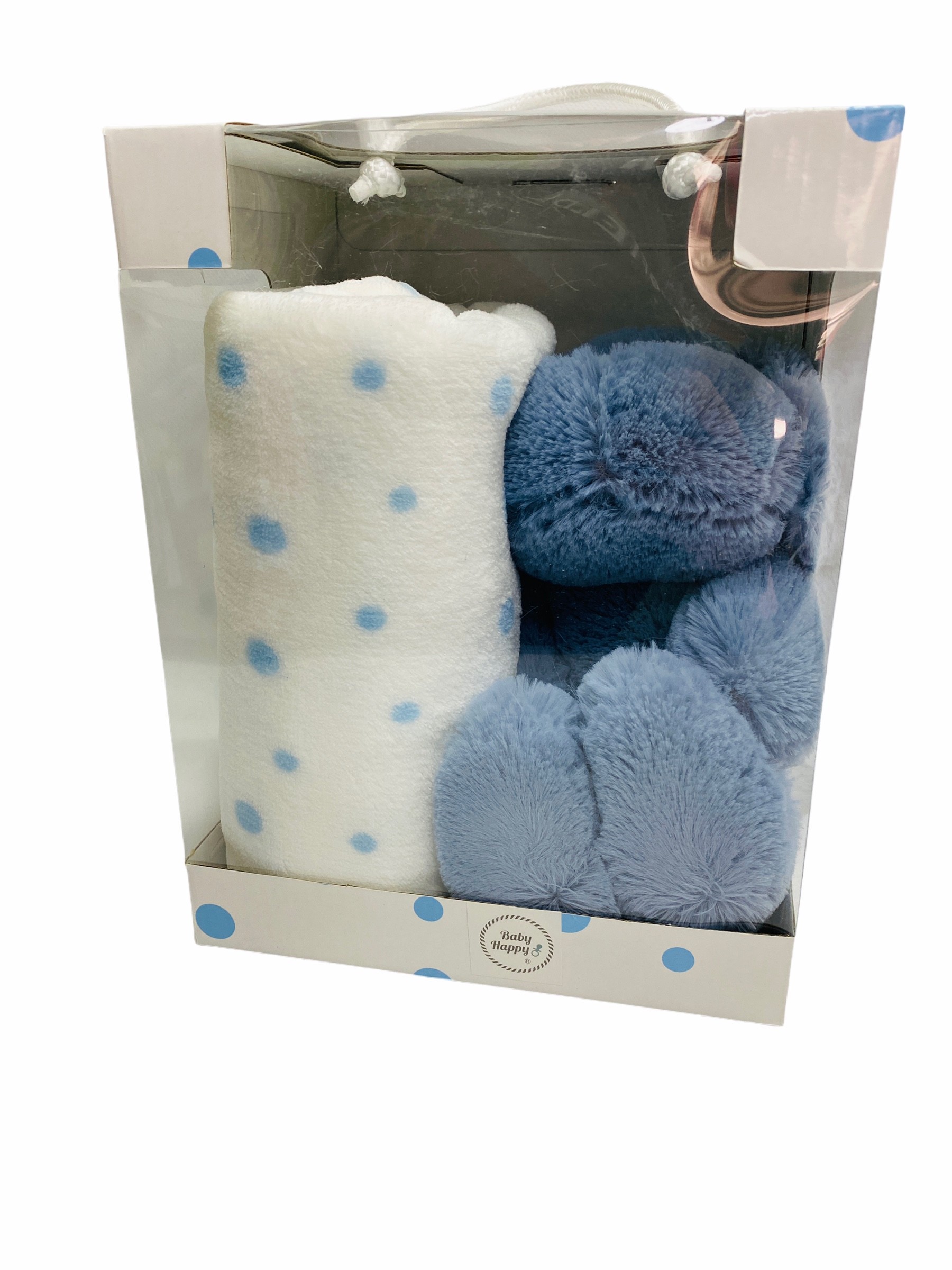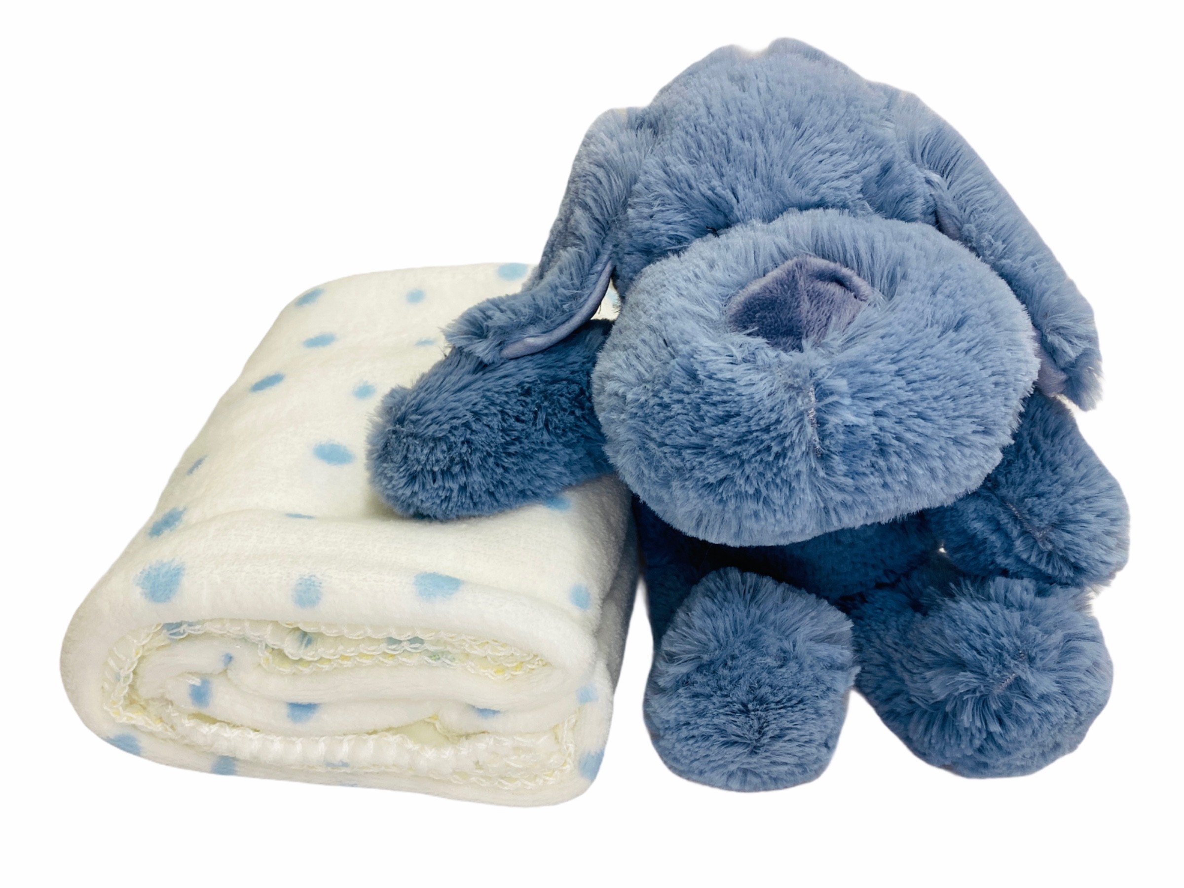Peluche Perro + Manta Coralina en caja Regalo color AZUL