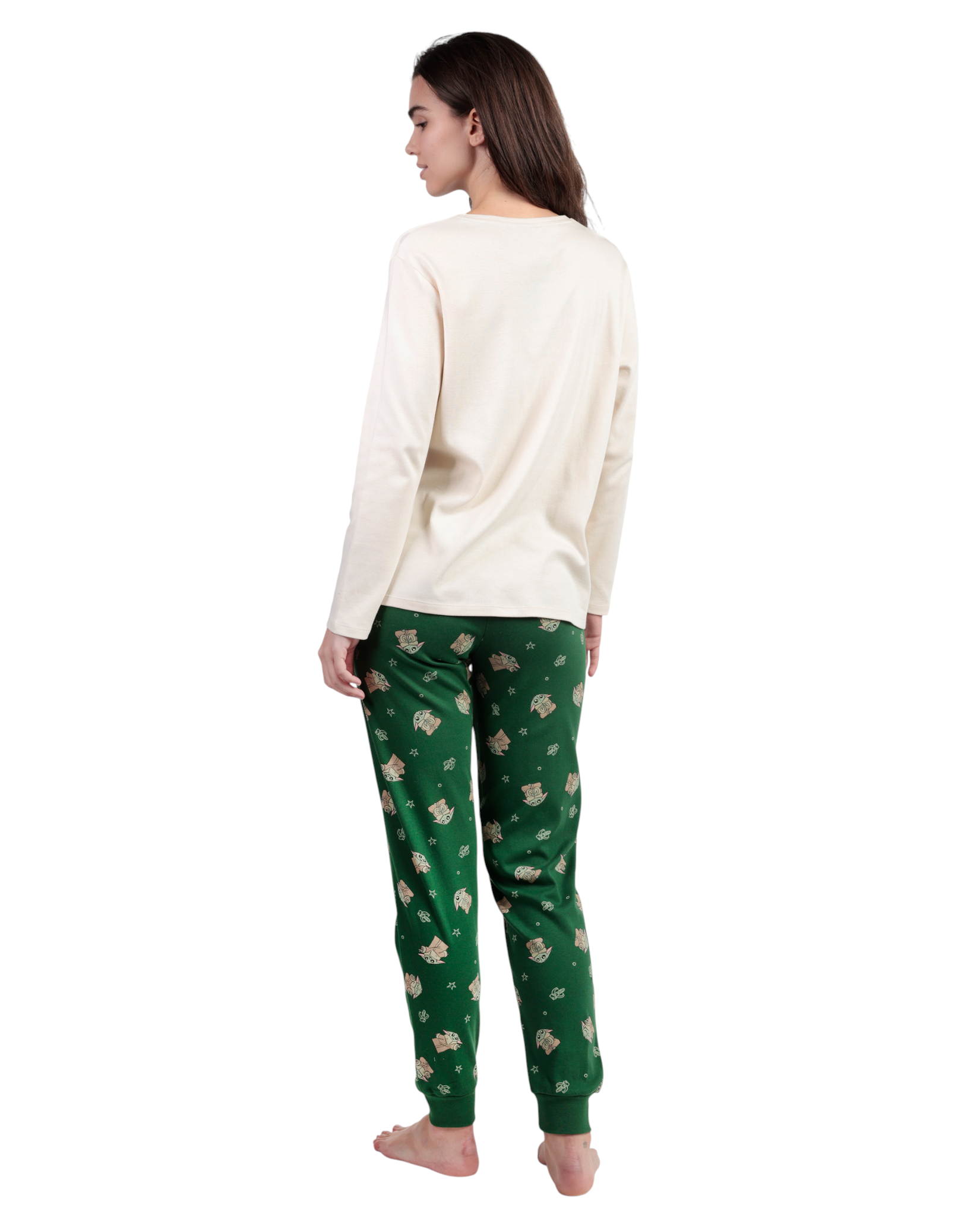 Pijama de punto interlock con detalles estampados y detalles flocados y puños en el pantalón.