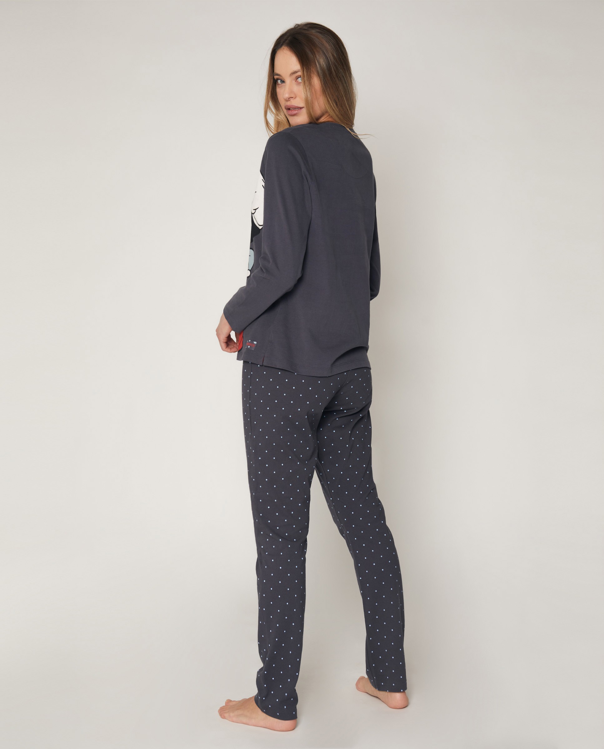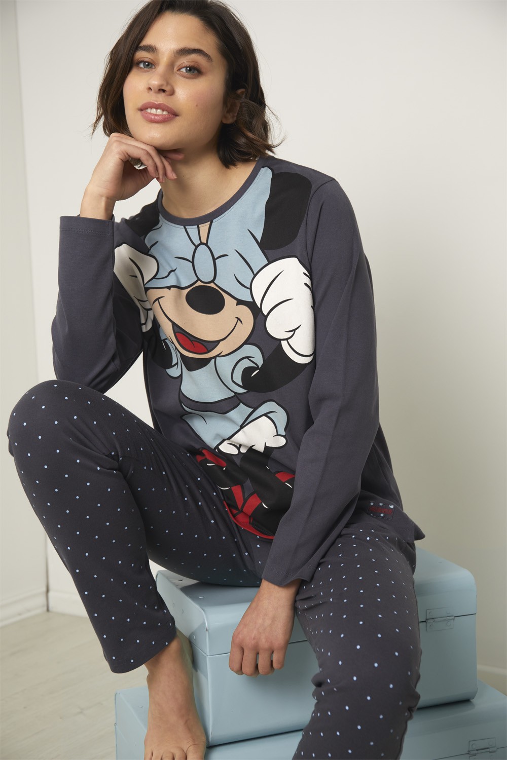 Pijama divertido y original para Señora en tono Marengo, camiseta con Estampado de Minnie Mouse.