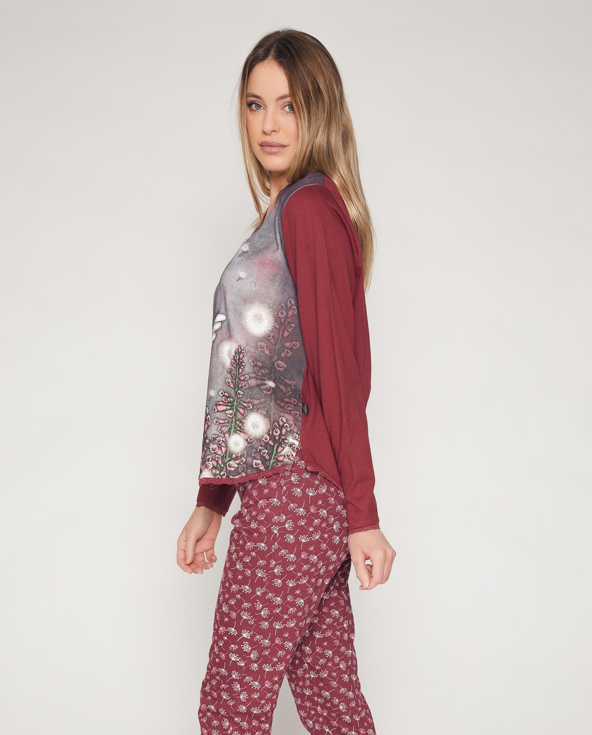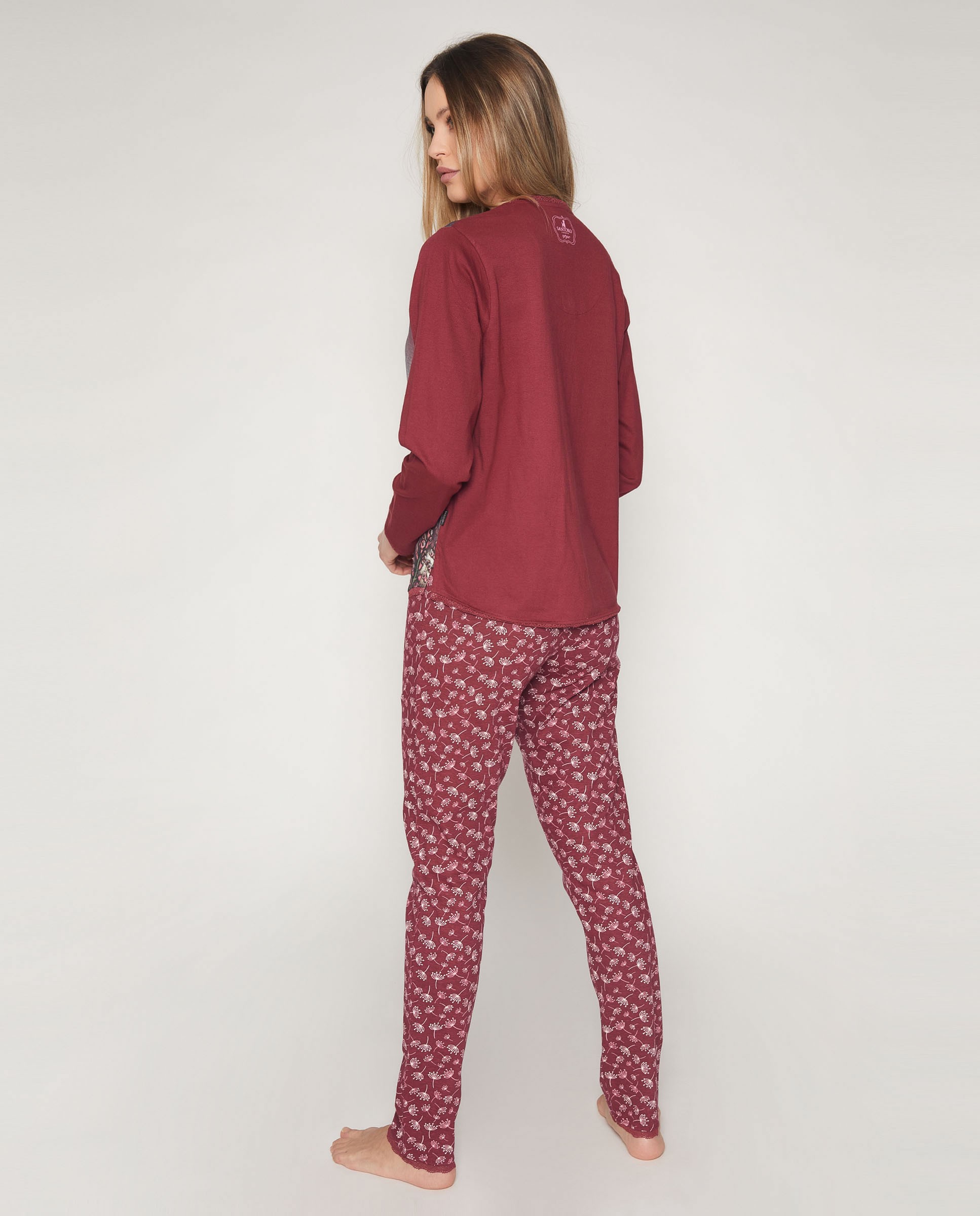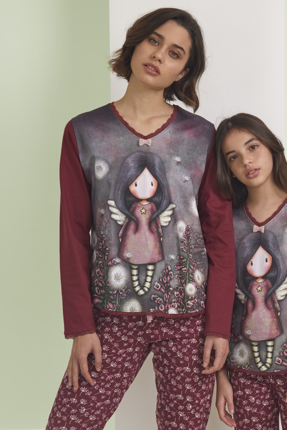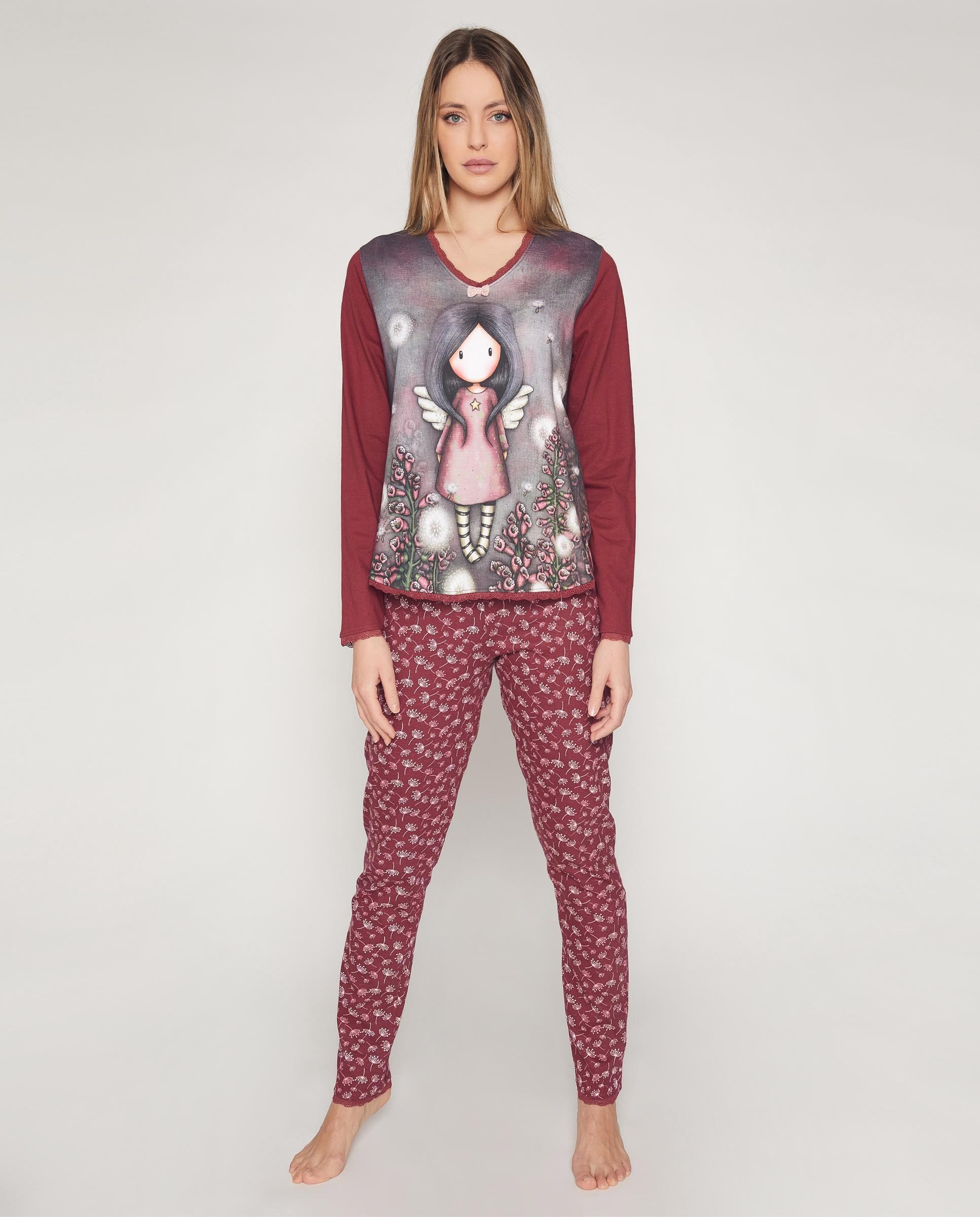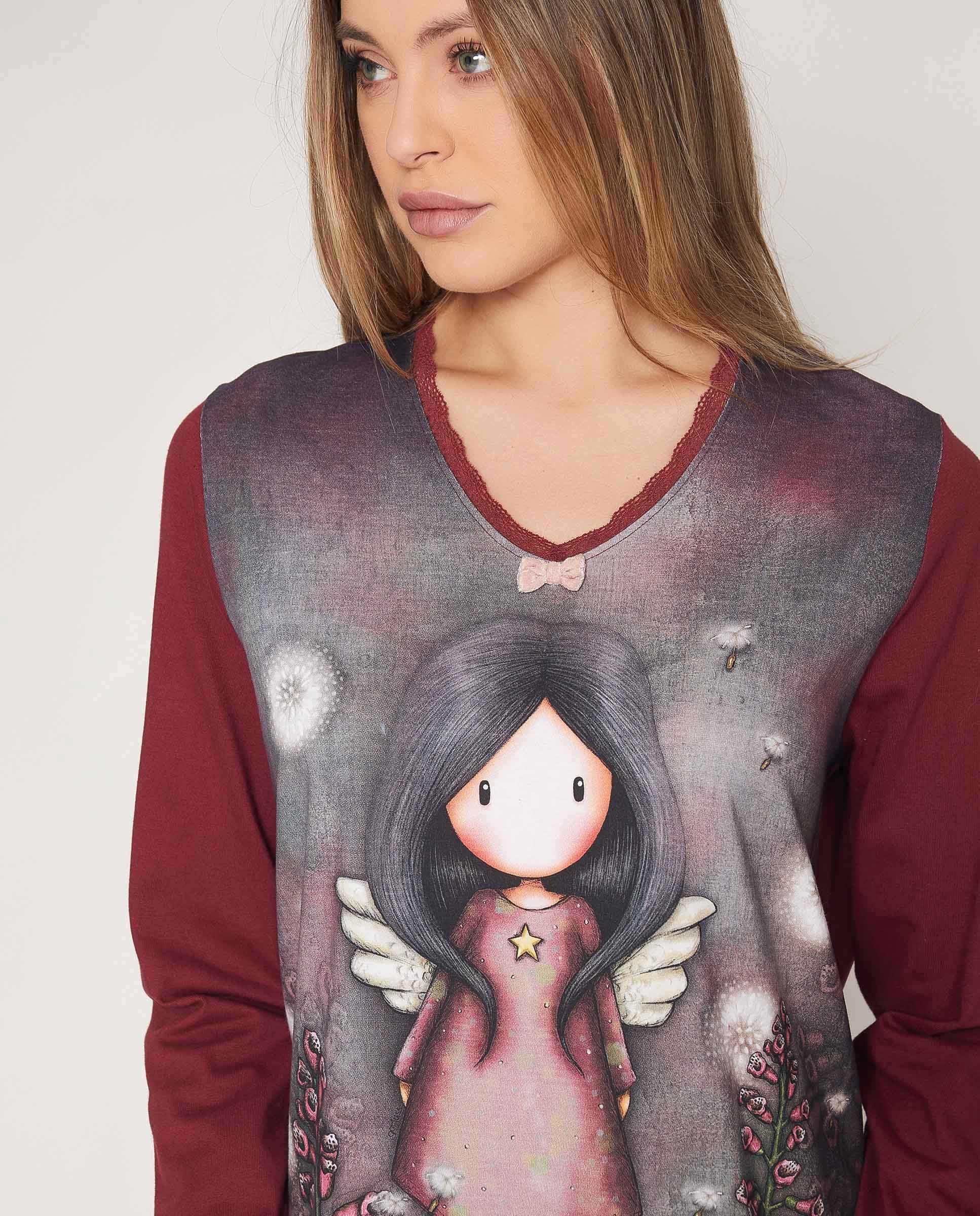 Pijama divertido y original para Señora en tono Burdeos con Estampados de Gorjuss.
