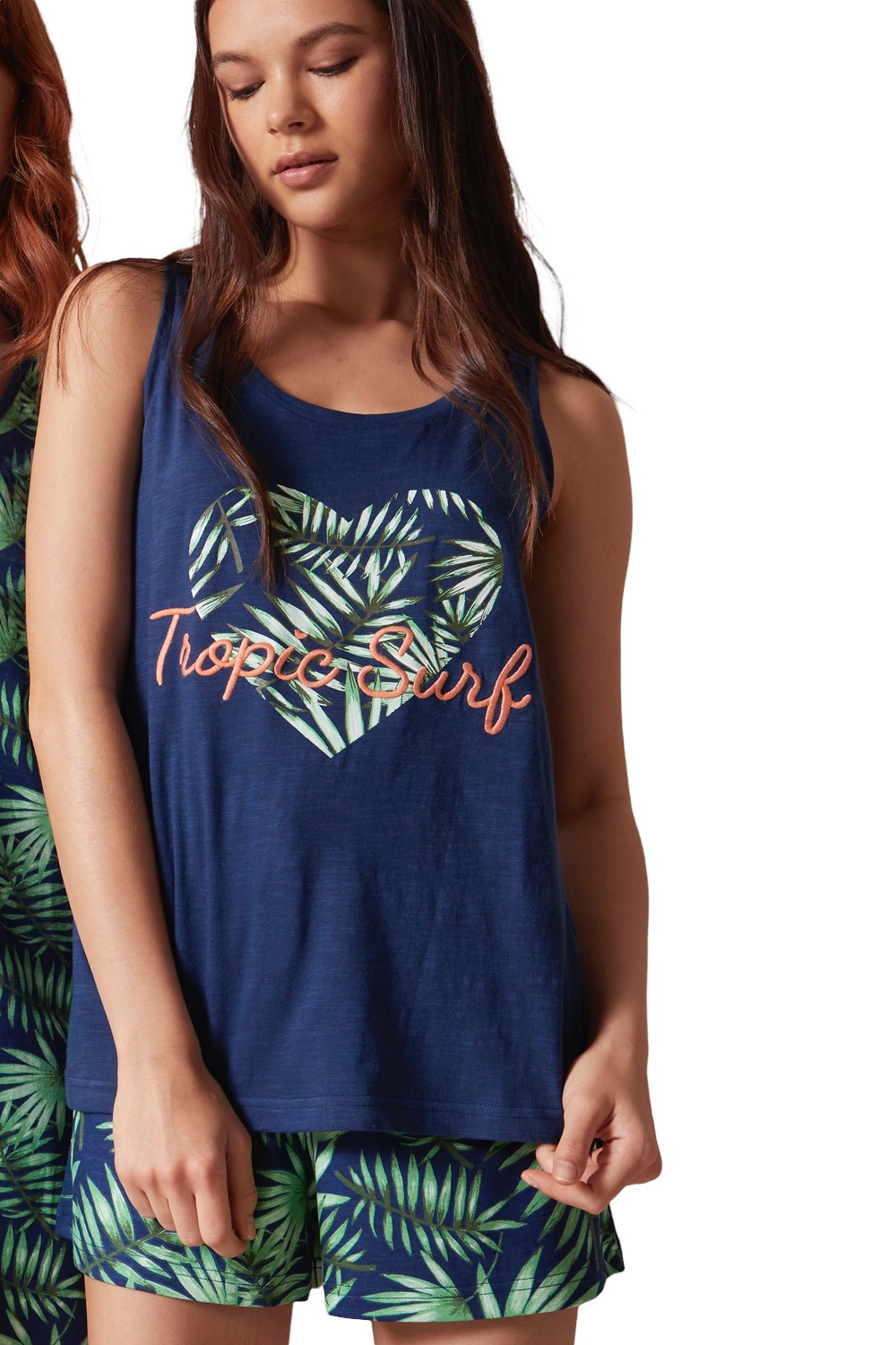 Pijama de punto de algodón, de Tirantes con cuello redondo y pantalón corto