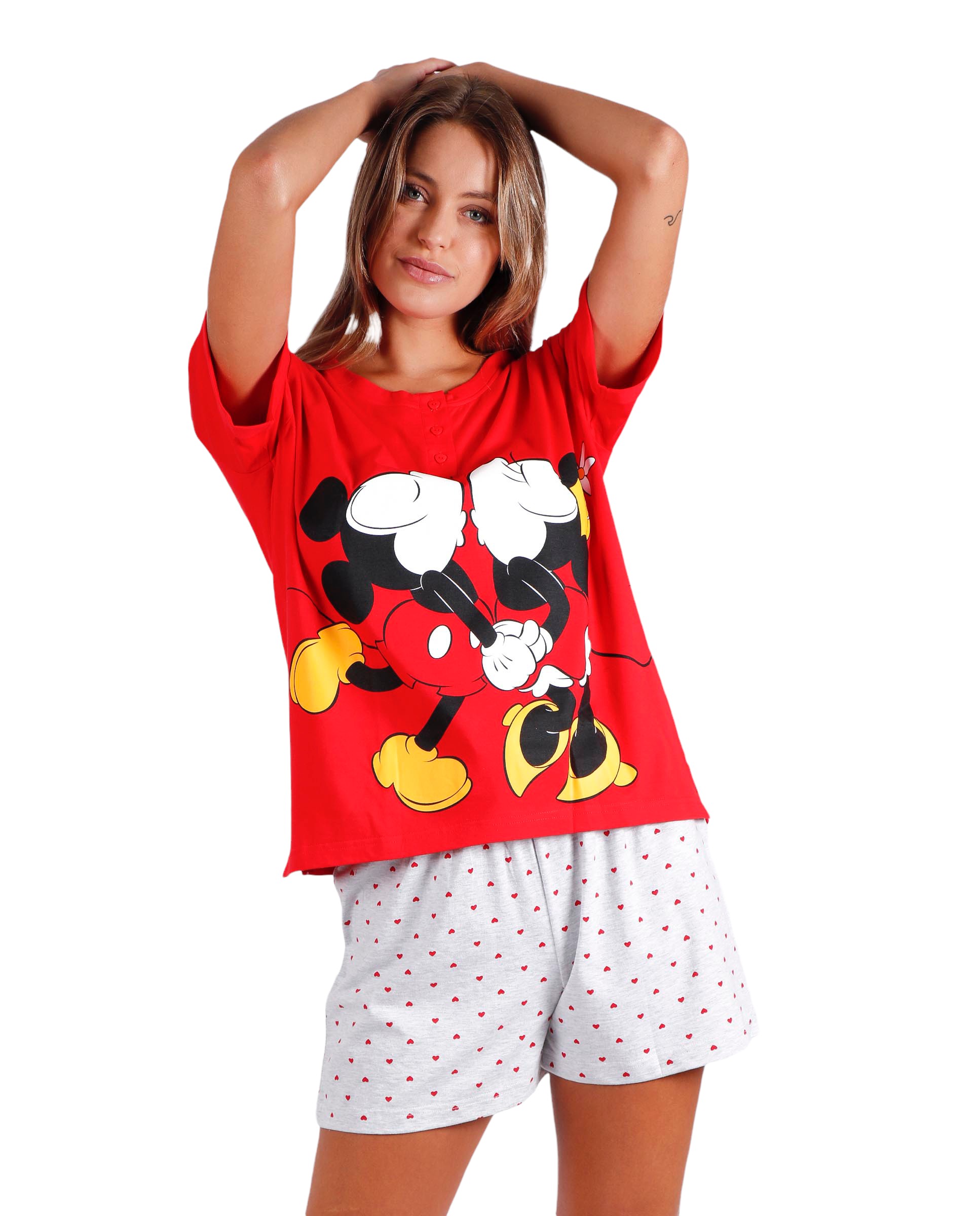 Pijama de punto de algodón, de Manga Corta con cuello redondo y pantalón corto