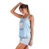 Pijama de punto de algodón, de manga corta, cuello redondo y pantalón corto.
