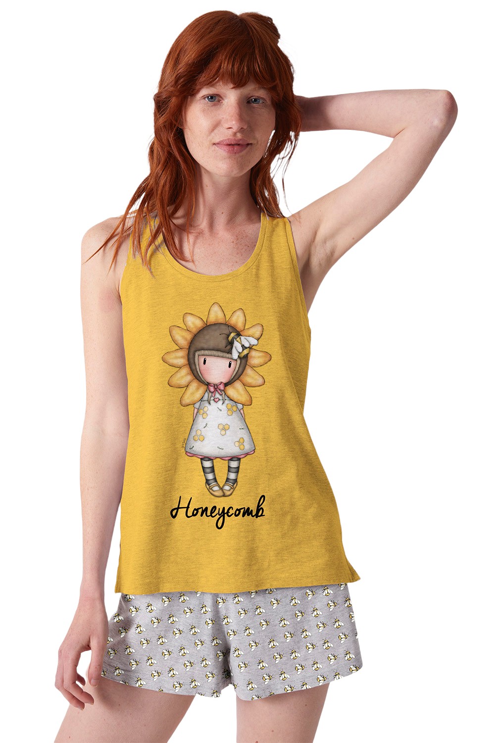 Pijama de punto de algodón de Tirantes con cuello redondo y pantalón corto