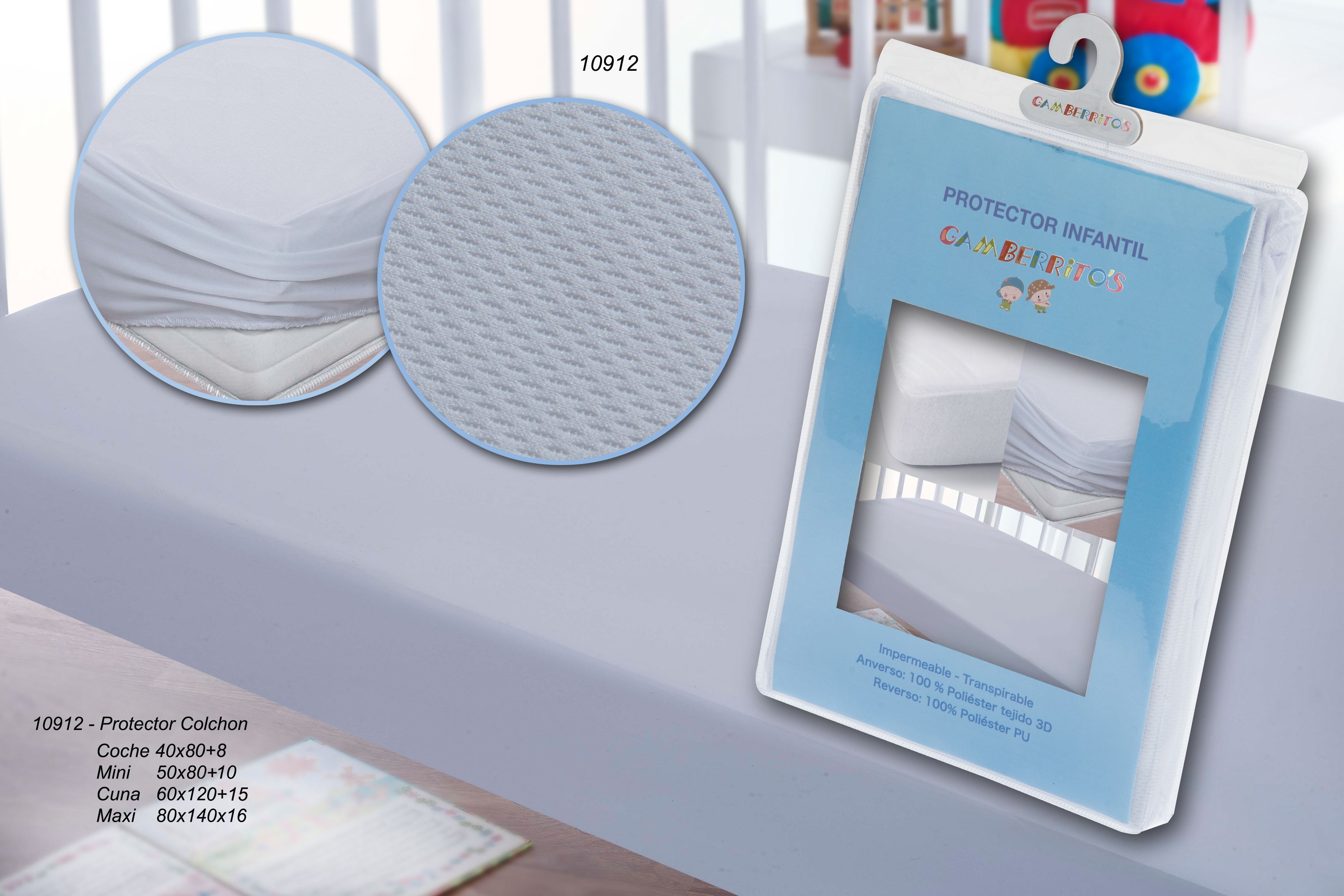 Protege el descanso de tu bebé con el protector de colchón Gamberritos, un básico imprescindible en cualquier cuna, minicuna o carro. Fabricado con materiales de alta calidad, este protector combina impermeabilidad y transpirabilidad, garantizando confort y seguridad en todo momento.