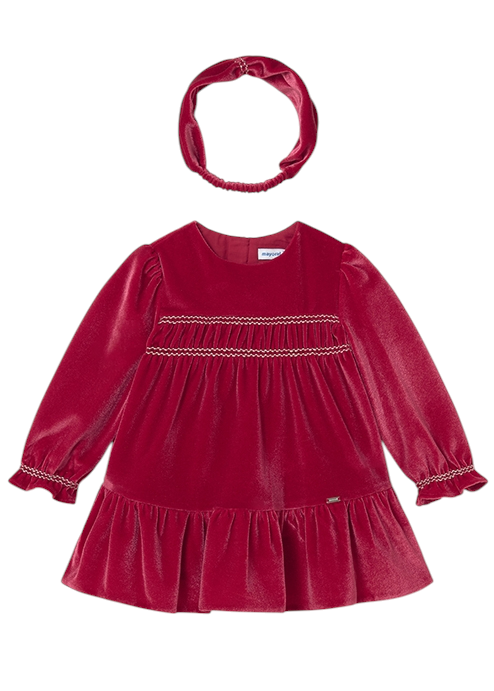 Vestido terciopelo con diadema bebé MAYORAL Rojo